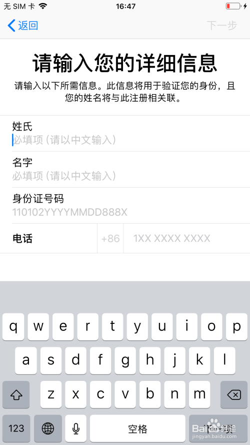 点击“验证您的身份” - 点击“继续”- 输入您的具体信息 - 点击“下一步”