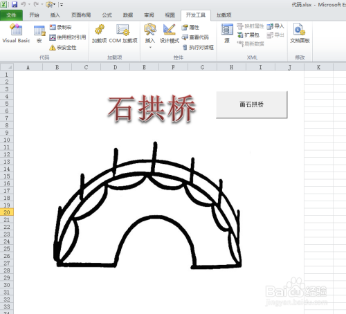 6.点击插入一个按钮控件,并定名为“画石拱桥”。