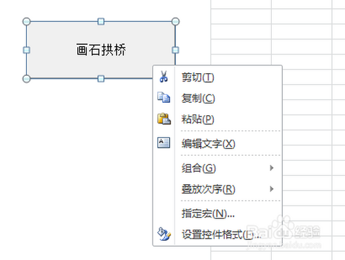 7.选中“画石拱桥”控件,然后点击鼠标右键,选择“指定宏”。