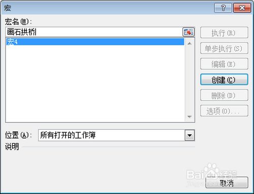 4.写明VBA代码名称,然后点击“建立”按钮。