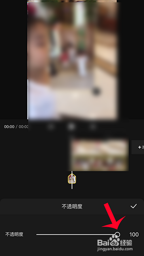 不透明度打开后,滑动调节球,调节到想要的结果,点击对勾。