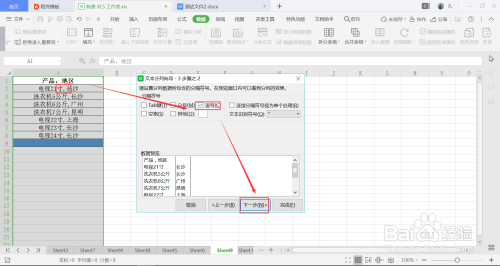 此页面按照测试数据中的英文符号,我们选择逗号,若是是中文逗号需在其他中设置,点击下一步;