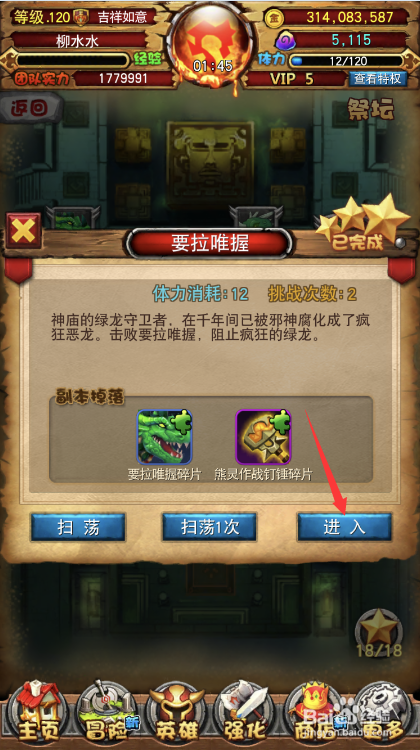 点击游戏本家儿菜单冒险,再点击子菜单副本按钮。