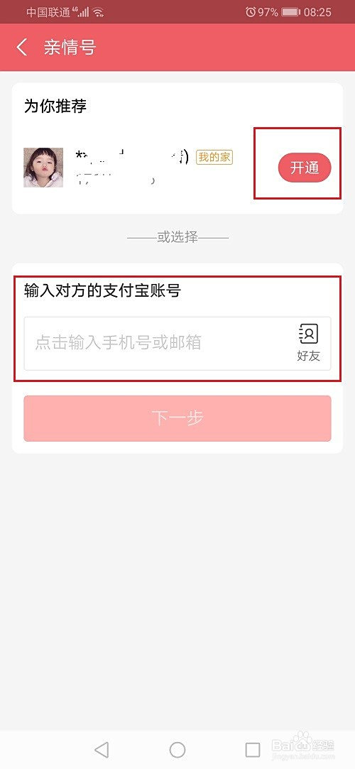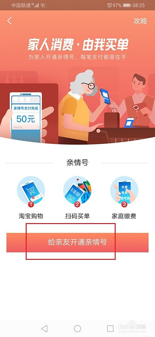 第三步进去之后,点击给亲朋开通亲情号,如下图所示: