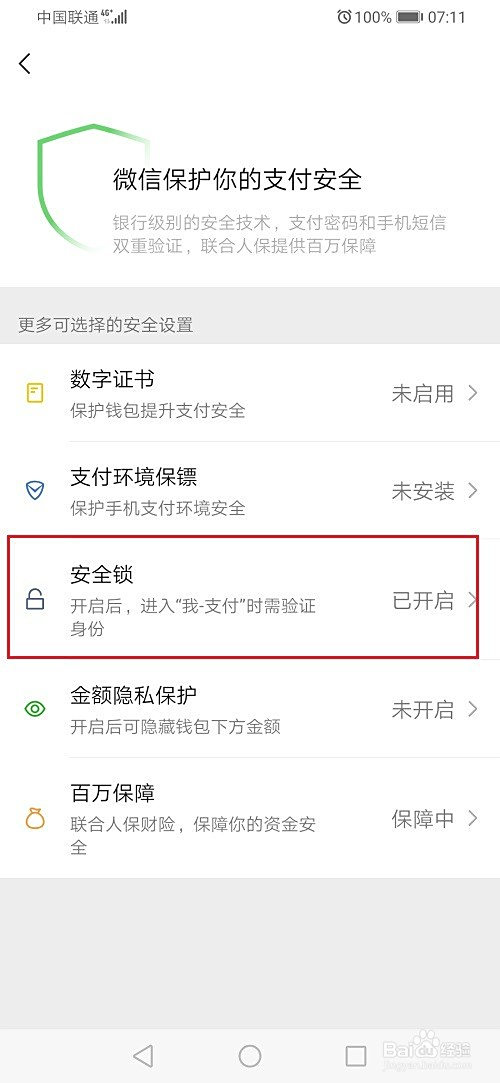 第五步进去微信平安锁之后,可以设置支付锁,如下图所示: