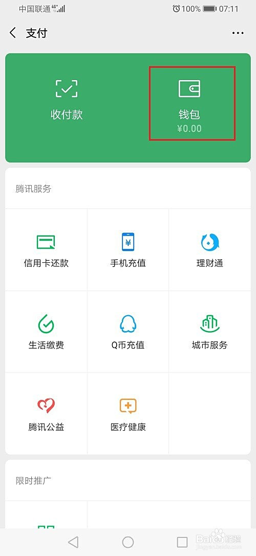 第二步进去微信支付之后,点击钱包,如下图所示: