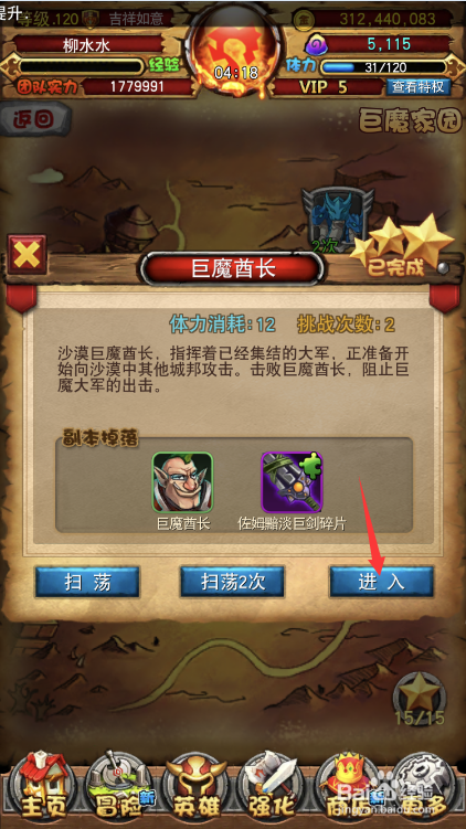 点击游戏本家儿菜单冒险,再点击子菜单副本按钮。