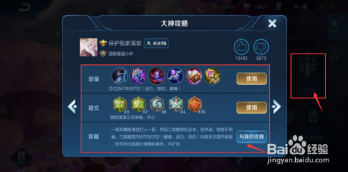 再点击介绍里的进阶信息,可以看到大神攻略,里面有相关的装备和铭文的保举。