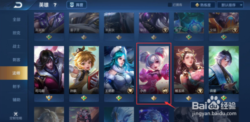 点击英雄选项按钮,再在里面找到需要查看的英雄。