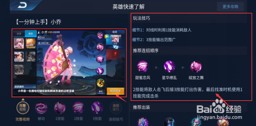 点击介绍里的短视频,可以看到英雄的视频介绍和相关的弄法技巧。