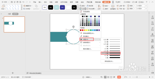 点击轮廓,线条颜色填充为和矩形一样的颜色,线条宽度设置为3磅。