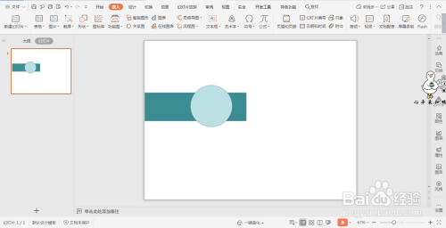 接着插入一个正圆形,放置在矩形上,位置和巨细如图所示。