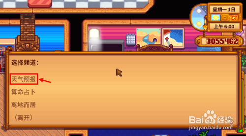 冬天不会打雷下雨,所以不克不及发生电机组,其他三季气候环境可以用电视机查看。鼠标右击电视机,点击"气候预告"选项。