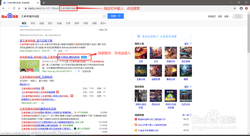 第一步:在随意一个浏览器的导航栏中输入【王者荣耀体验服】,然后找到【官网】点击进入。
