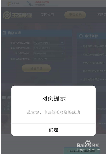 第五步:提交今后,页面反馈信息,在此申明,小编的提交日期为2020/5/28,提交今后,页面立马反馈“申请体验服资格当作功”。小编祝您早早取得体验服资格。