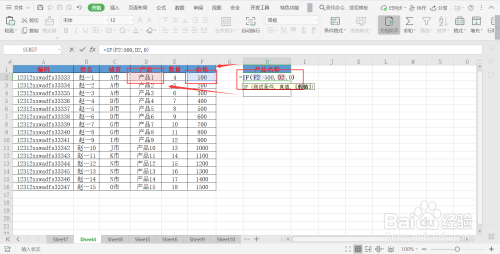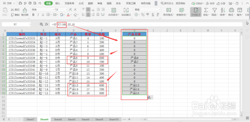 在新建列单位格中输入公式=IF(F2>500,D2,0),用于计较当价钱大于几多时,返回产物名称,不然返回0,详情如下图所示;