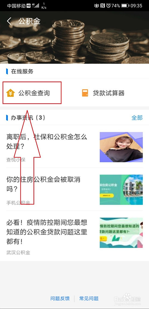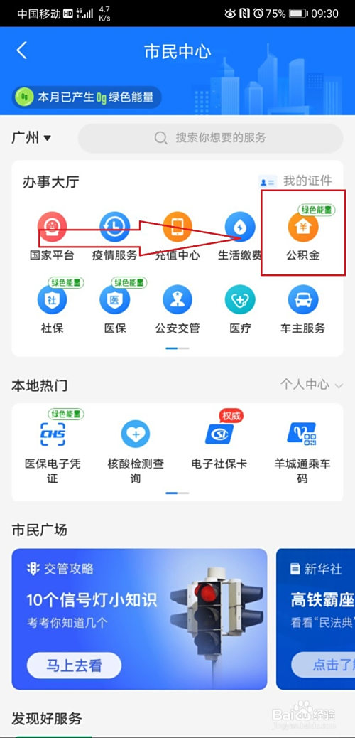 进入到城市办事处事大厅后,找到公积金,点击进入;