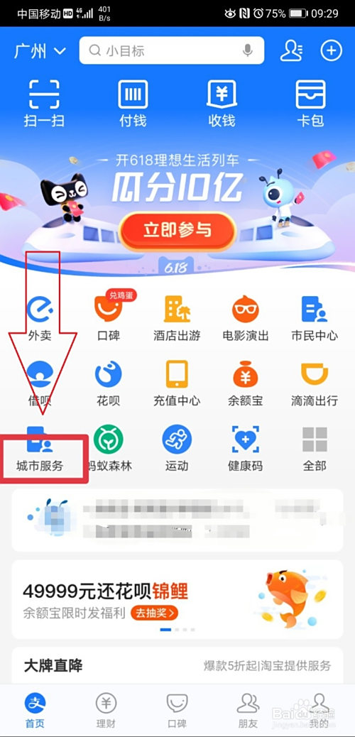 2、进入到支付宝首页后,找到城市办事,点击进入,如首页没有,可以到全数里去查找;