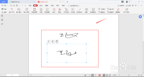 在将签好的名,经由过程鼠标左键点在pdf的空白处,然后可经由过程拉动蓝色框,进行巨细调整。