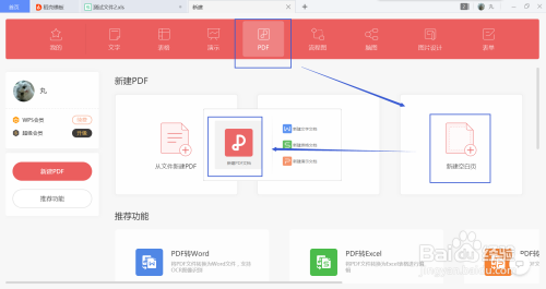 在wps电子表格中点击加号新建一个空白的PDF文件;