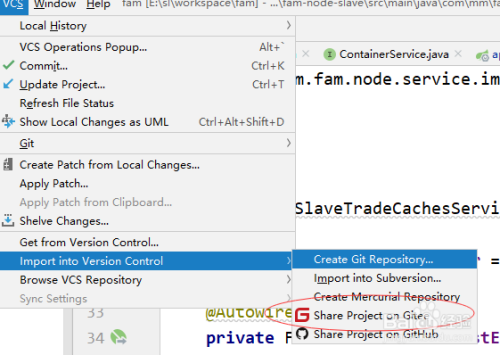 下载安装插件当作功今后,选择cvs---->Import into Version Control,这时您会发现已经有码云插件