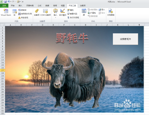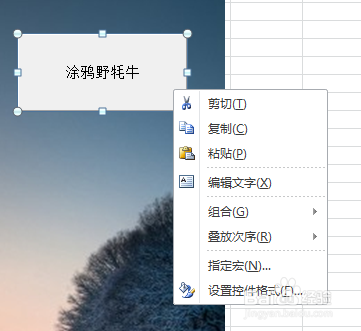 7.将按钮控件定名为“涂鸦野牦牛”,然后点击右键,选择“指定宏”选项。