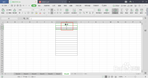空白页中,新增列,列名为数字,并在列名下单位格中输入数字1和2;