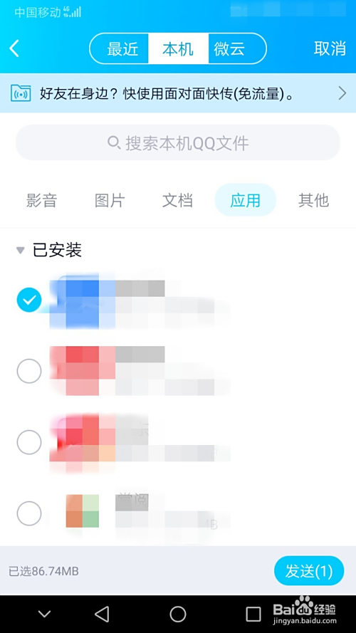 进去之后就会直接显示应用,选择一个应用,按下发送。