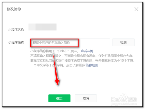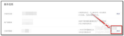 4.在根基设置项目中点击“小程序简称”后“点窜”