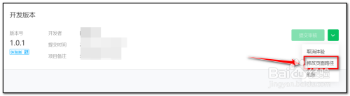 4.找到开辟体验版后下拉框中“点窜页面路径”
