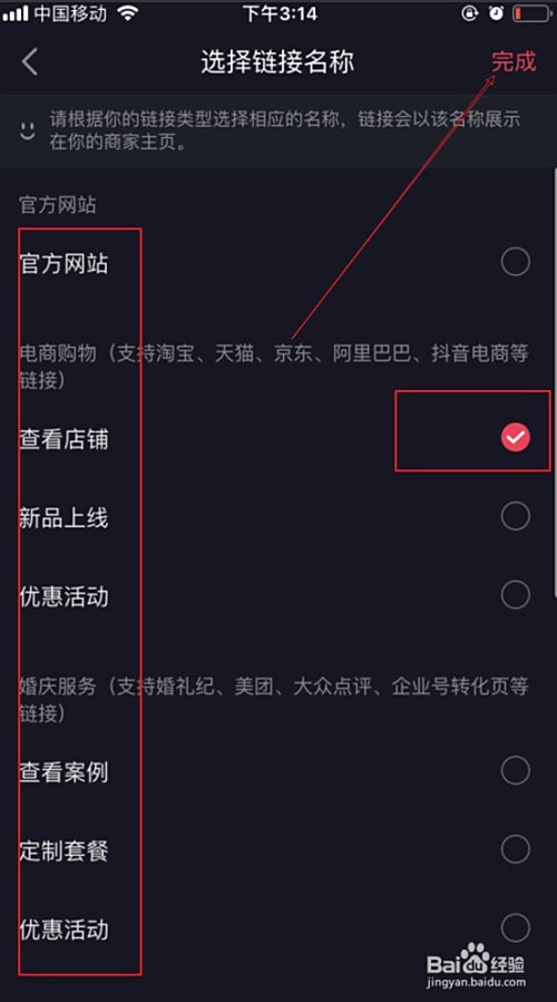 点击【链接名称】,选择是官网网站仍是查看店肆等等。