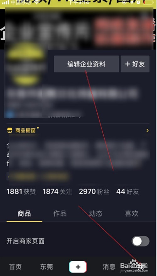 点击打开抖音APP,点击右下角的【我-编纂企业资料】。