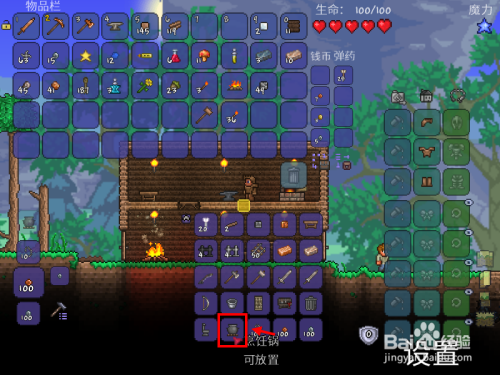 6、泰拉瑞亚烹调锅建造要求:铁锭×10,木材×2。
