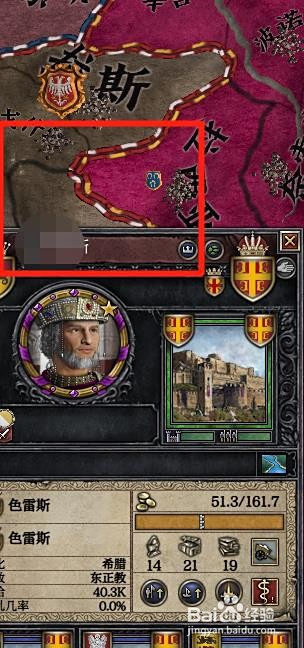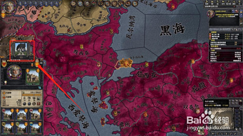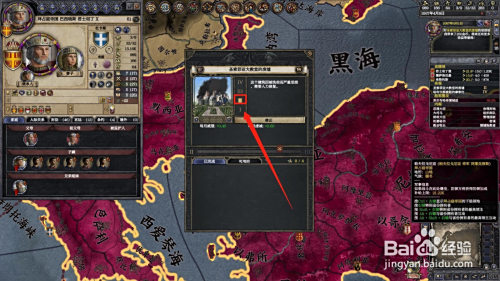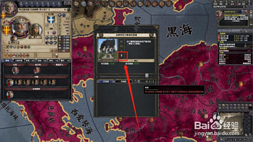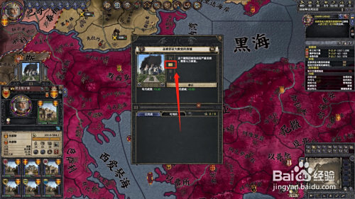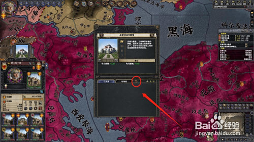 进入游戏后,点击您有奇不雅的伯爵领,然后点击伯爵领名字上的“奇不雅”,如图箭头所指。如图作者以拜占庭帝国为例。