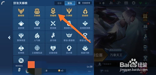 可以查看荣耀战力榜,荣耀战力可以评各地域排行榜,国服最强等。