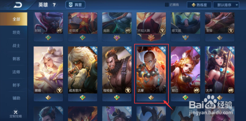 点击英雄选项按钮,再在里面找到需要查看的英雄。