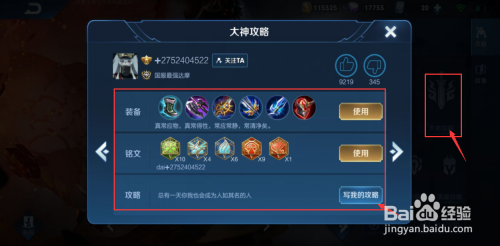再点击介绍里的进阶信息,可以看到大神攻略,里面有相关的装备和铭文的保举。