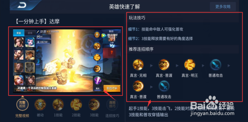 点击介绍里的短视频,可以看到英雄的视频介绍和相关的弄法技巧。