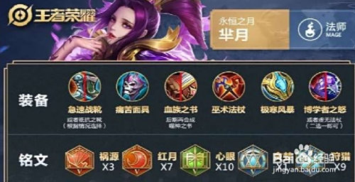 芈月,技术可以盗取对方进犯,大招有无敌,有位移,被动蝙蝠可以吸血,单挑根基上很少有兵士打得过,出装铭文见下图;
