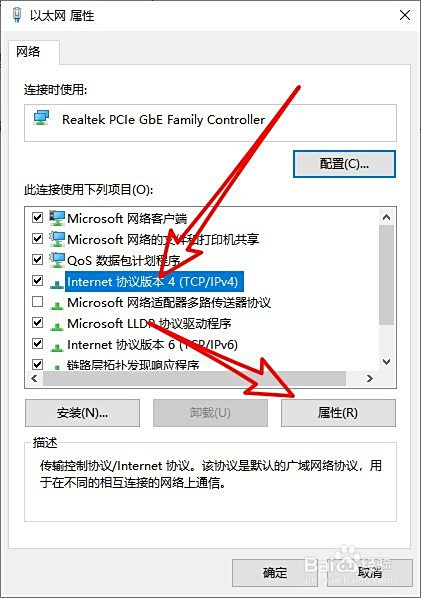 接下来在打开的收集属性窗口选中internet和谈版本4的选项后,点击属性按钮。
