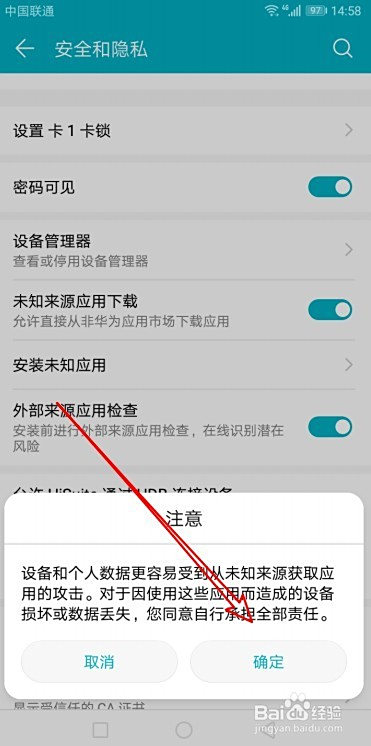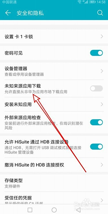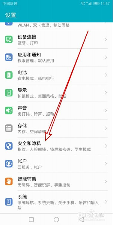 然后再打开的手机设置页面,点击平安和隐私菜单。