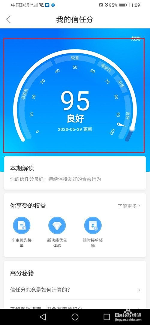 第四步进去之后,可以看到哈啰顺风车信赖分,如下图所示: