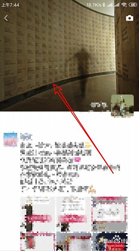 在手机上打开微信,然后点击伴侣圈页面的布景图。