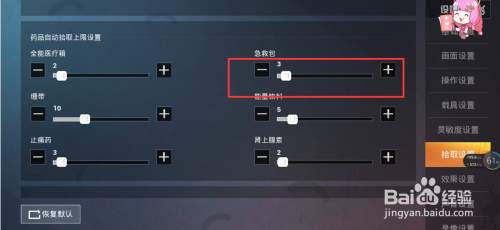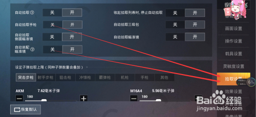 三,点击右方列表中——拾取设置。(在这里,您可以按照小我游戏习惯进行 设置,削减不需要的舔包过程。)
