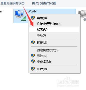 3、鼠标右击所毗连的WIFI,并点击“状况”