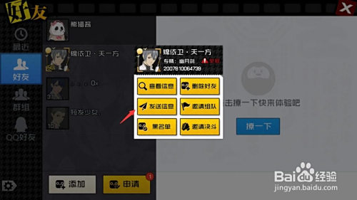 有了老友,我们可以查看对方信息、发信息、组队、决战。