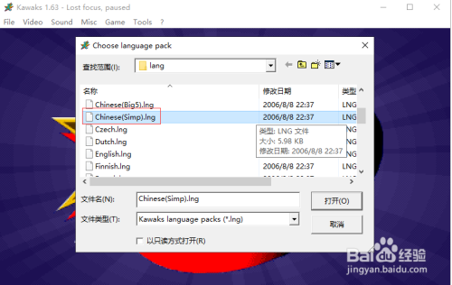 在弹出的窗口中,找到【Chinese(simp).lng】并打开。