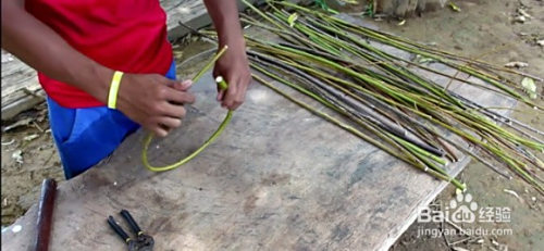 我们在做的时辰,其实就是将竹子先切当作细条,然后平铺在地上,再用绳索捆住,形当作一个圆柱的外形。