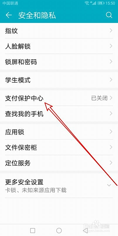 这时会打开该设置项的详情页面,找到支付庇护中间的设置项。