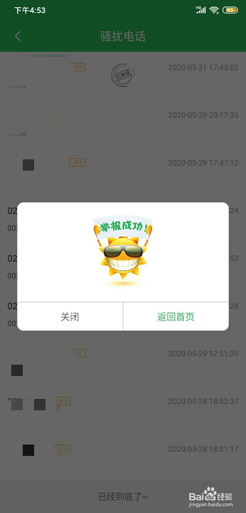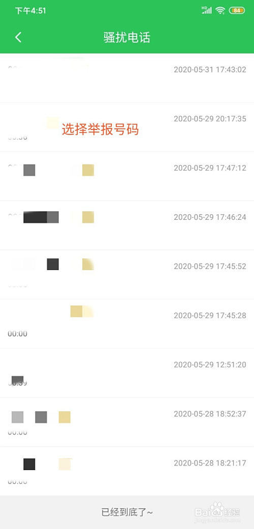 返回德律风列表点击要举报的德律风,选择骚扰形式和填写骚扰内容后点击下方举报即可。